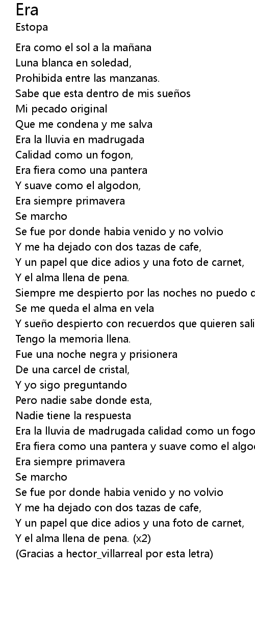 | Gracias a hector_villarreal por esta letra |