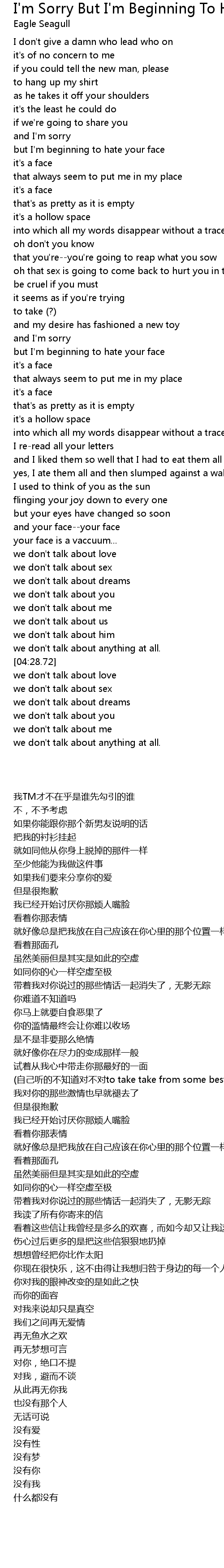 Song I'm Sorry But I'm Beginning To Hate Your Face