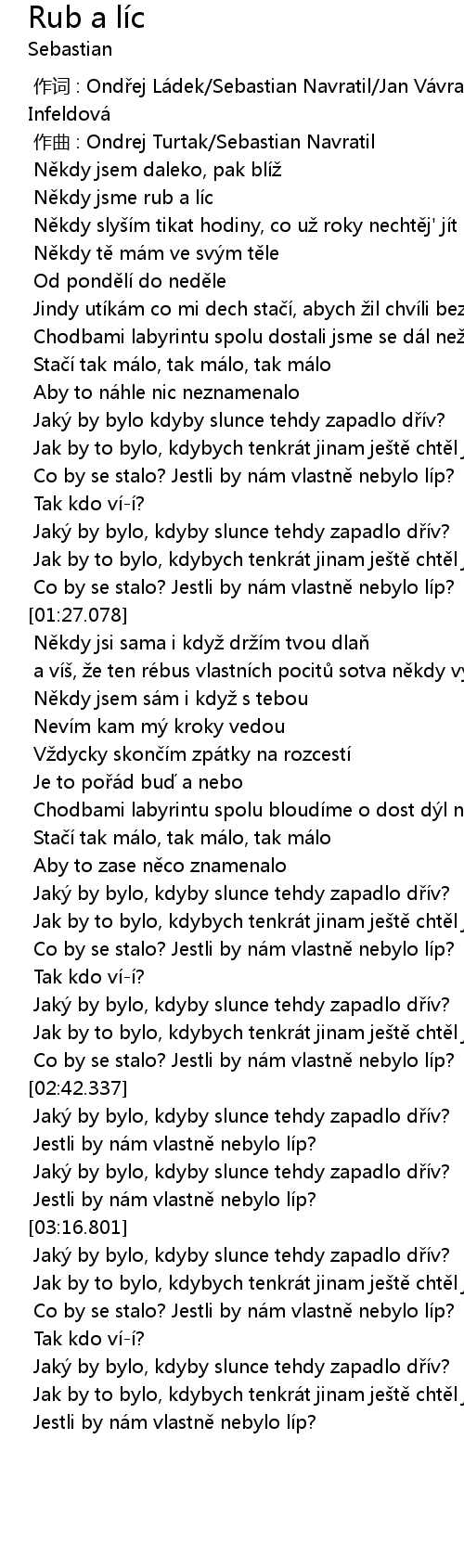 | [03:42.458] | Jestli by na m vlastne nebylo li p? |
