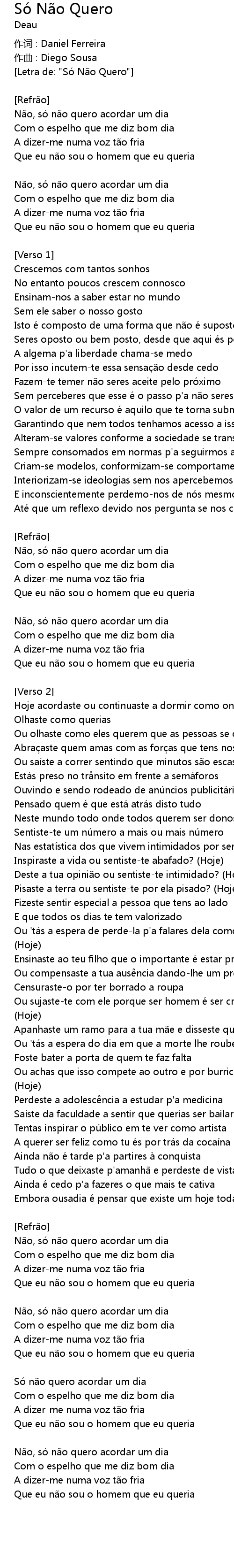 | Sem perceberes que esse e o passo p' a n o seres tu pro prio | |