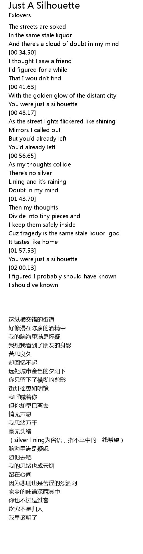 | [00:45.59] | You were just a silhouette |