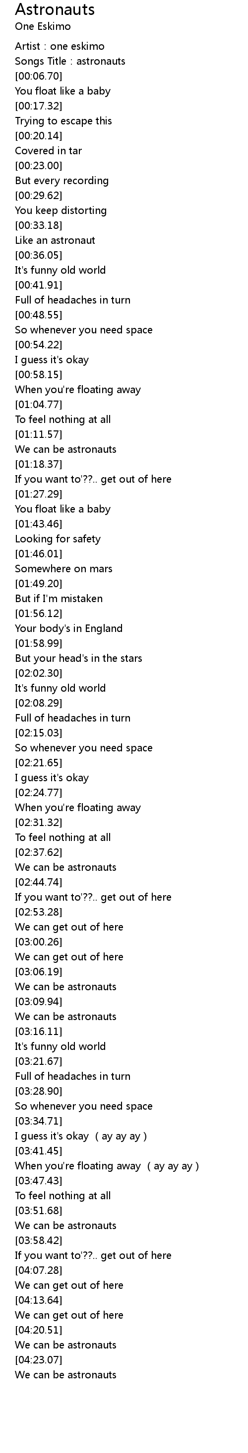 | [00:03.63] | Songs Title:astronauts |