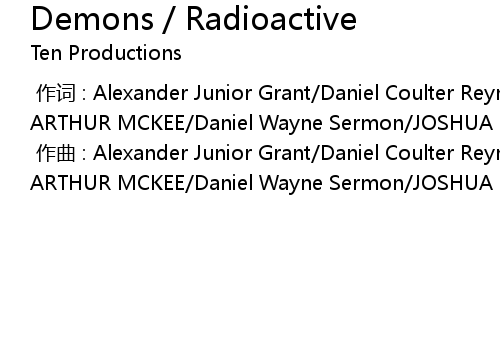 | [00:00.000] | 作词 : Alexander Junior Grant/Daniel Coulter Reynolds/BENJAMIN ARTHUR MCKEE/Daniel Wayne Sermon/JOSHUA FRANCIS MOSSER |