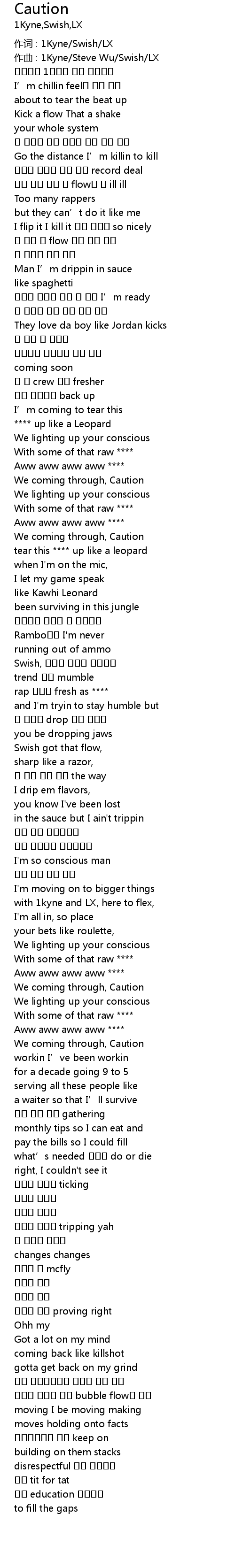 | 作词 : 1Kyne/Swish/LX | |
