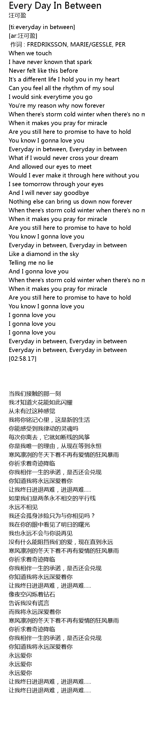 | [00:21.41] | It' s a different life I hold you in my heart |
