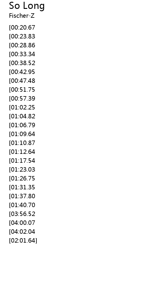| [02:29.36][00:20.67] | SO LONG BEEN WAITING SO LONG |