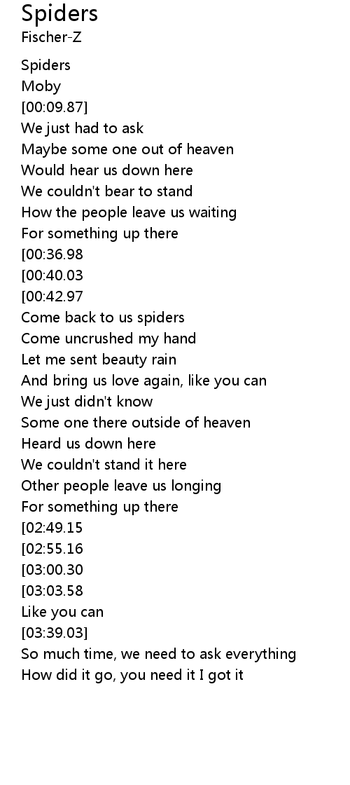 [03:13.15][02:49.15][02:13.15][01:48.80] Come back to us spiders