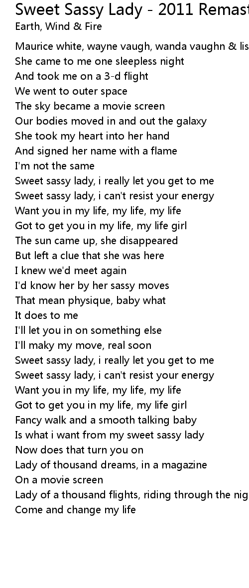 Sweet Sassy Lady - 2011 Remaster Lyrics