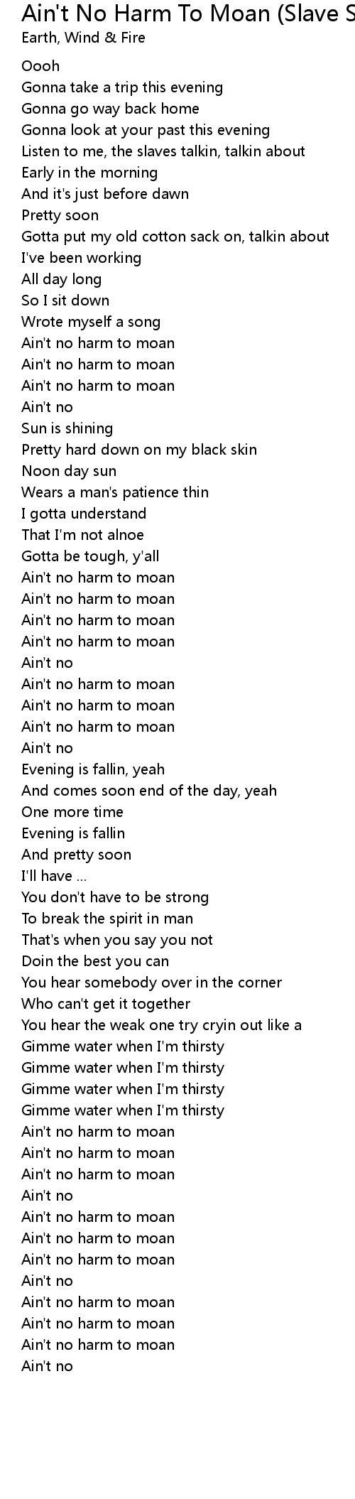 Ain't No Harm To Moan (Slave Song) Lyrics