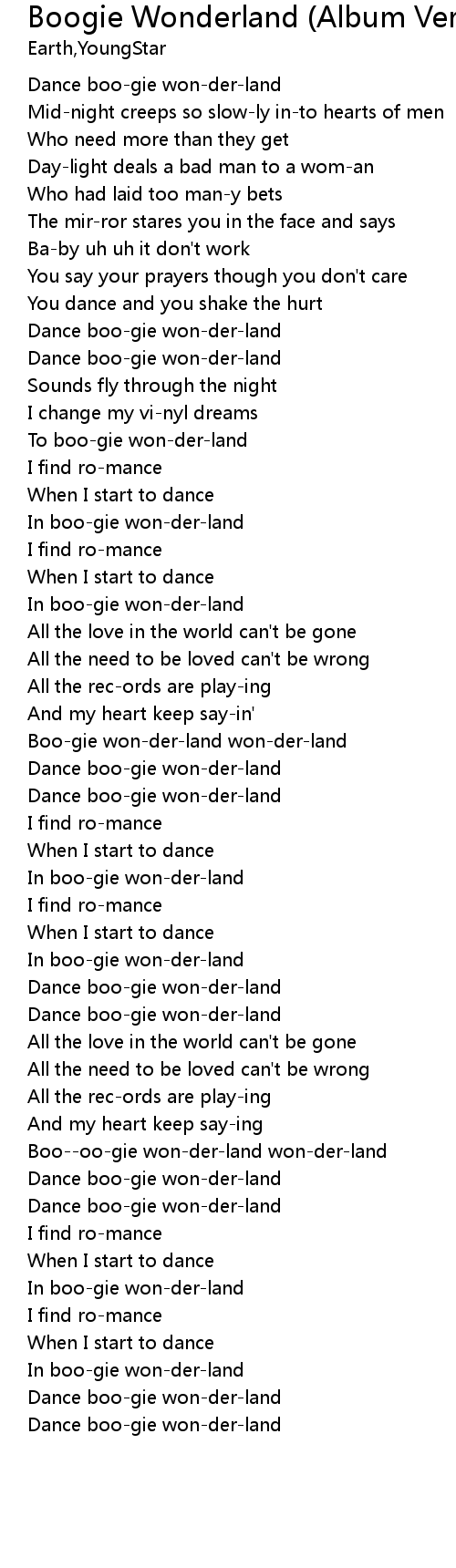 | [01:56.560] | Boo-gie won-der-land won-der-land |