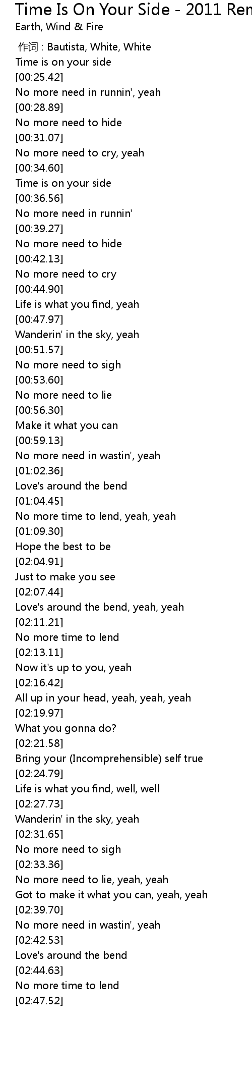 | [01:06.25] | No more time to lend, yeah, yeah |
