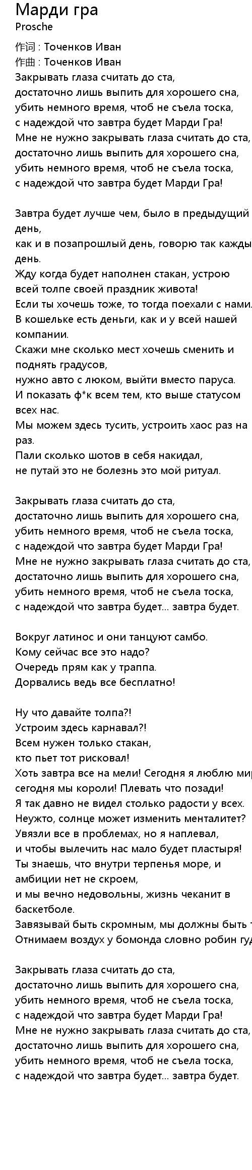 作词 : Точенков Иван