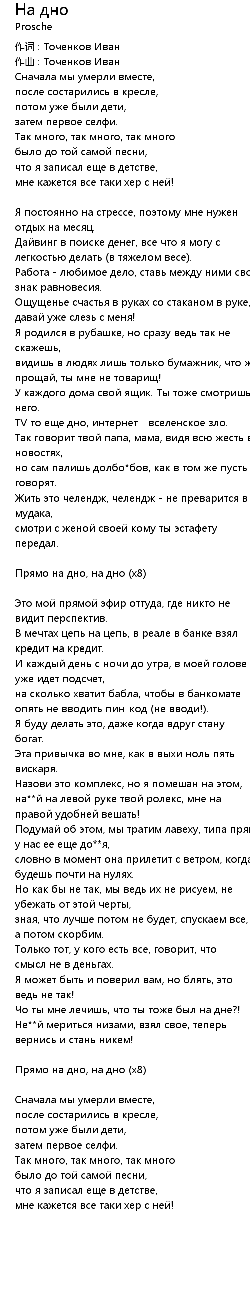 На дно  Lyrics