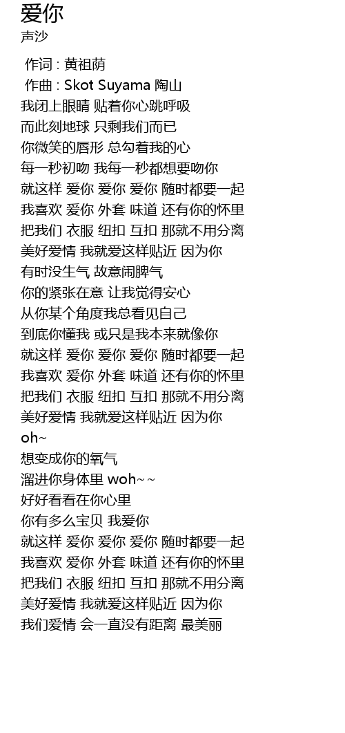 | [02:43.35] | jiù zhè yàng ài nǐ ài nǐ ài nǐ suí shí dōu yào yì qǐ |