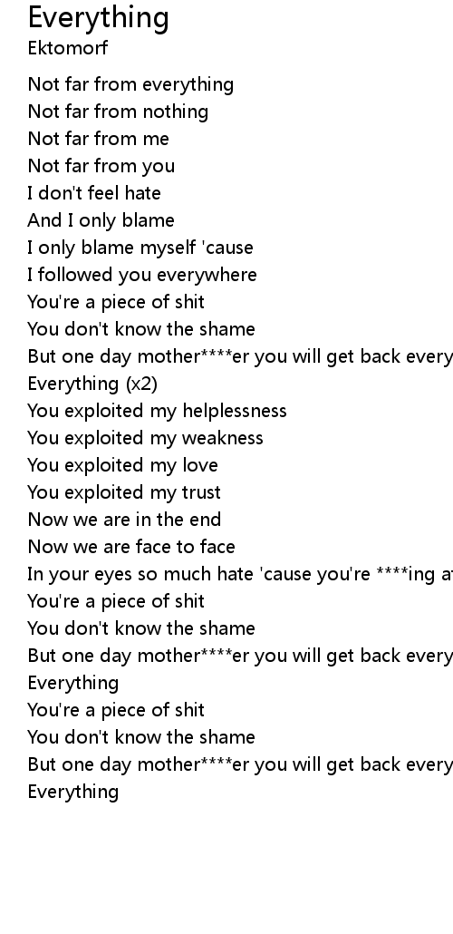 | In your eyes so much hate 'cause you're ****ing afraid | |