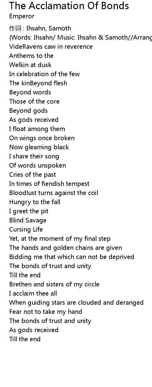 | (Words: Ihsahn/ Music: Ihsahn & Samoth//Arrangements: Ihsahn) | |