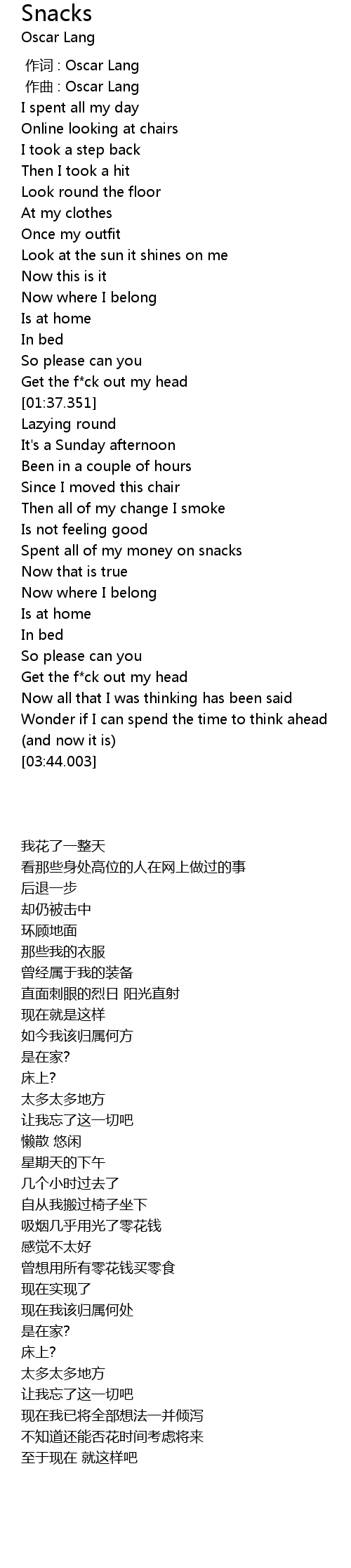 | [00:01.000] | zuò qǔ : Oscar Lang |
