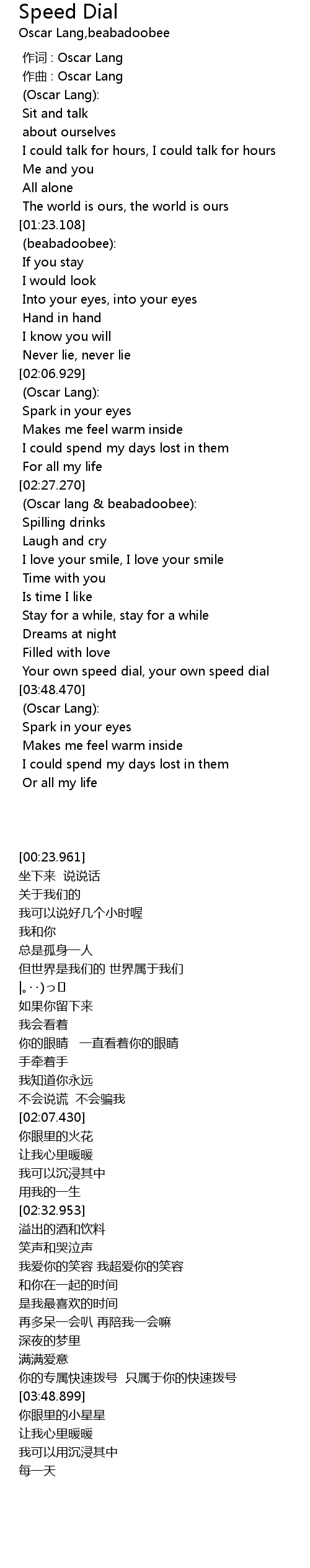 | [03:38.825] | Your own speed dial, your own speed dial |