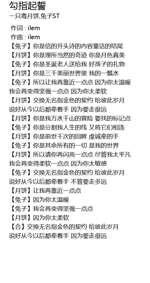 | [2:03.648] | 【兔子】交换无名指金色的契约 给彼此岁月 |