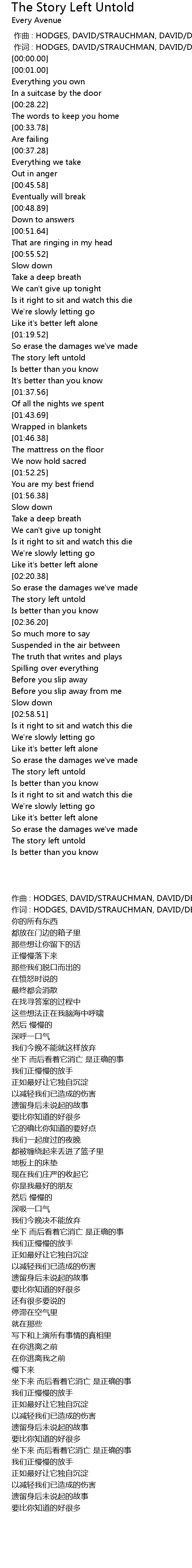 | [00:00.00] | 作词 : HODGES, DAVID/STRAUCHMAN, DAVID/DEEG |