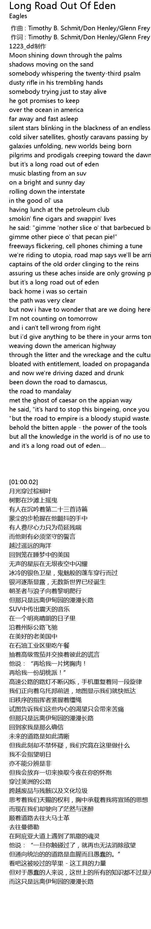 | [00:01.00] | zuò cí : Timothy B. Schmit Don Henley Glenn Frey |