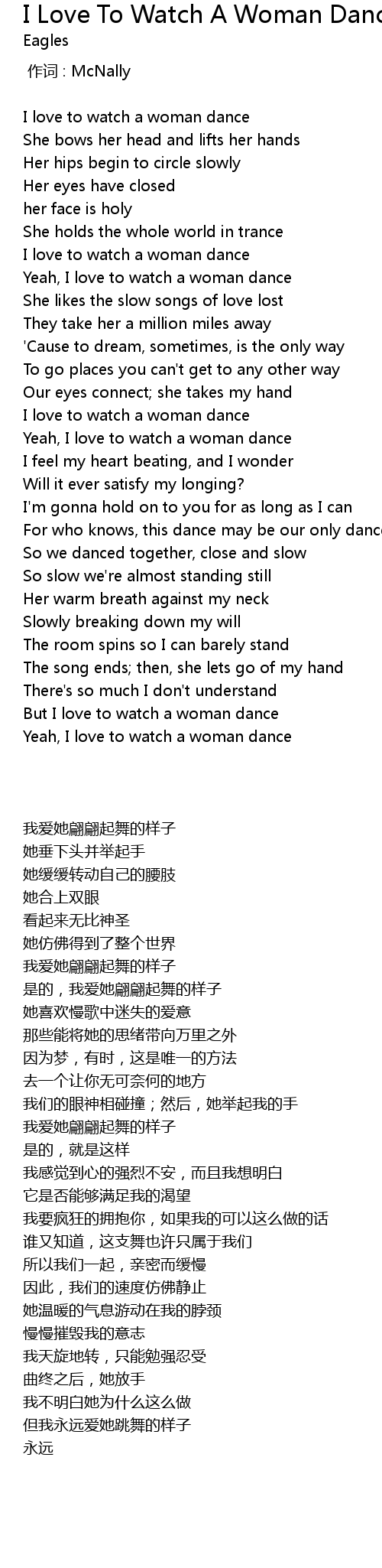 | [01:26.330] | Yeah, I love to watch a woman dance |
