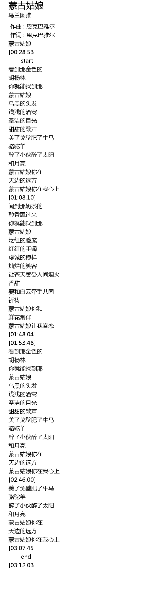| [00:00.00] | 作曲 : 恩克巴雅尔 |