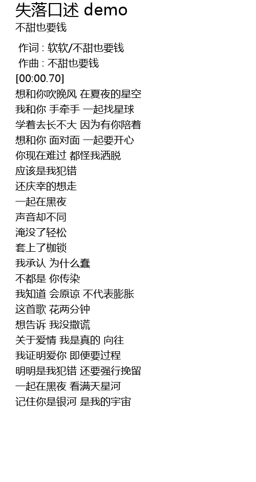 | [00:00.035] | 作曲 : 不甜也要钱 |