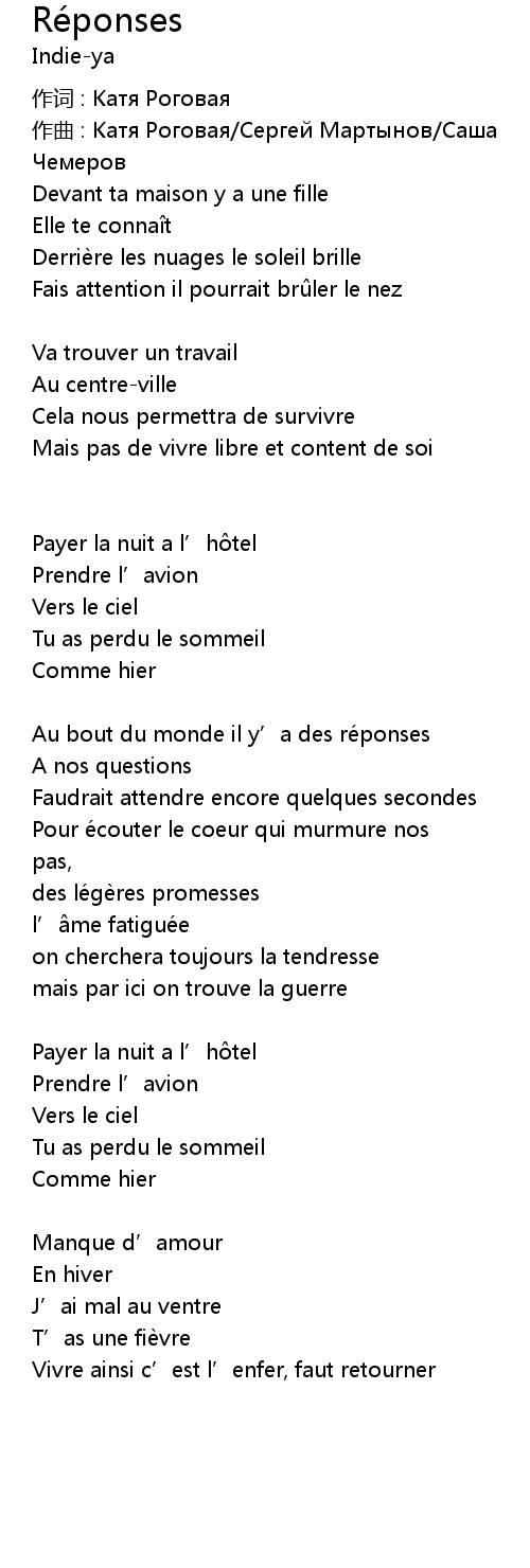 | Au bout du monde il y' a des re ponses | |