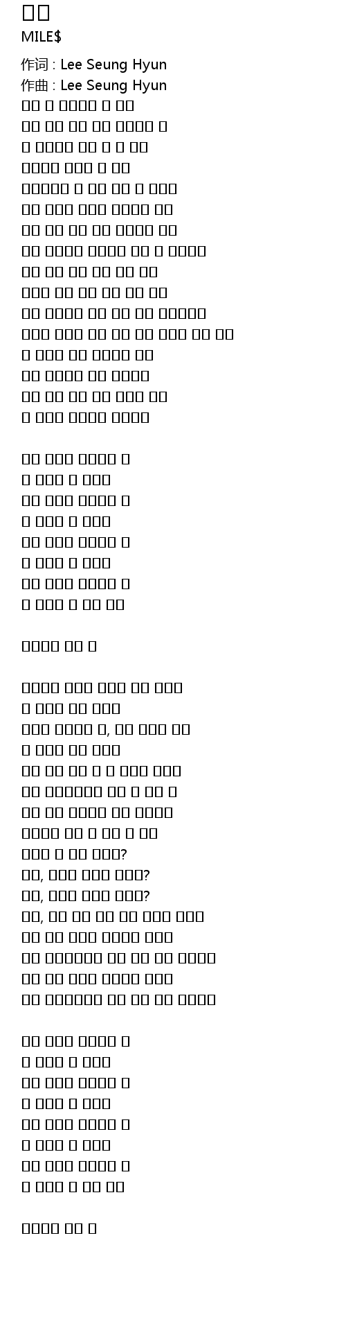 | 作词 : Lee Seung Hyun | |