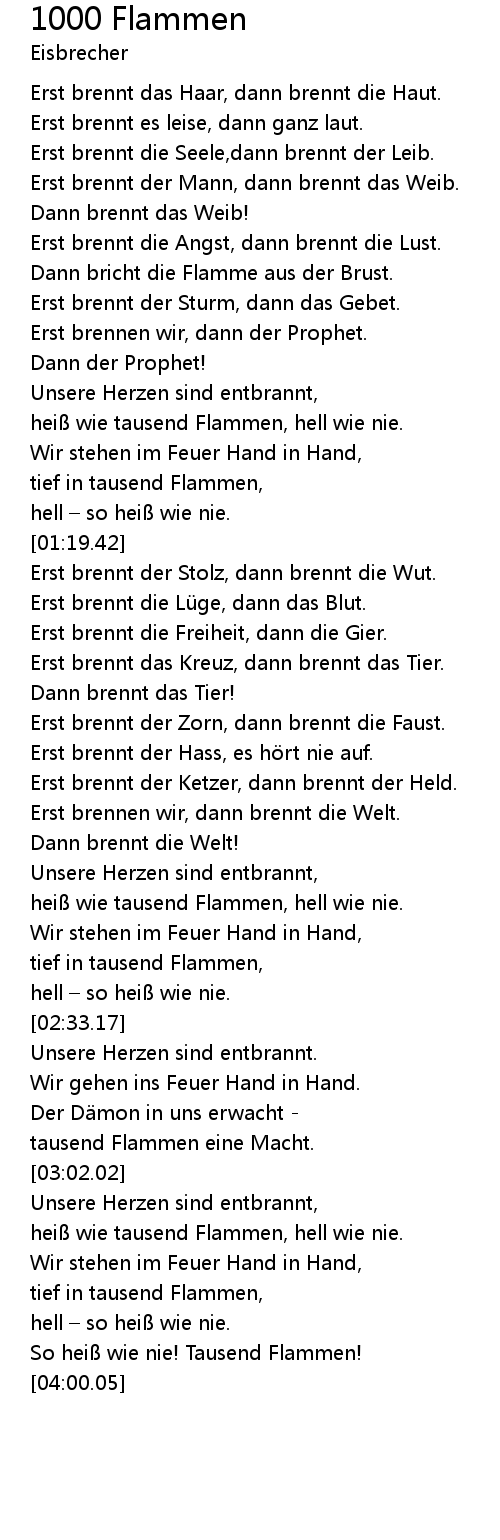 | [03:38.34] | So hei wie nie! Tausend Flammen! |