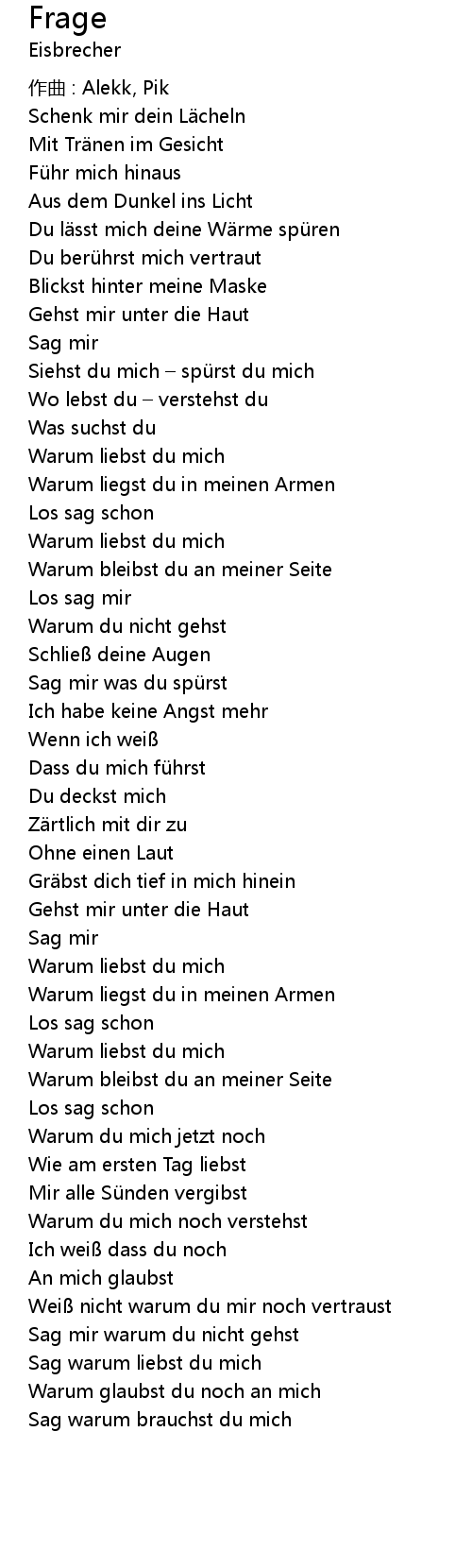| Song | Frage |