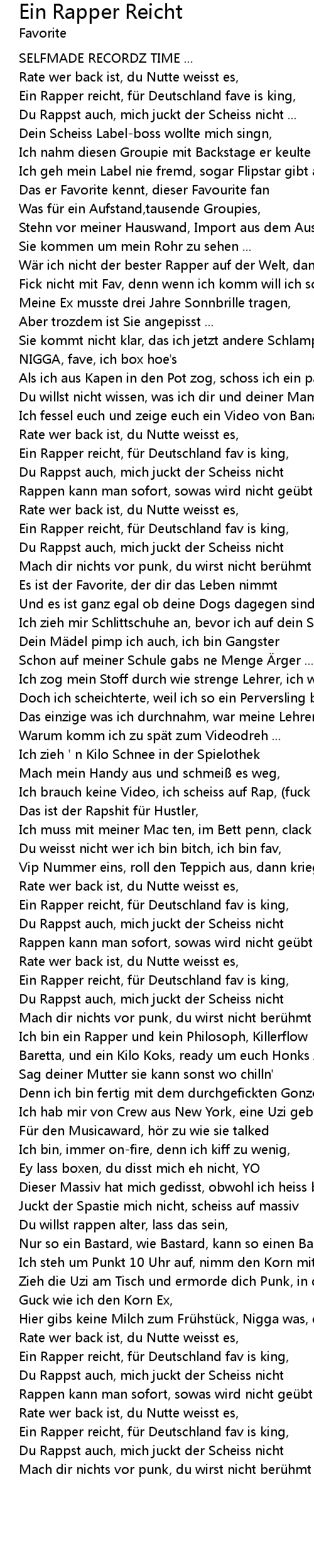 | Ein Rapper reicht, für Deutschland fav is king, | |