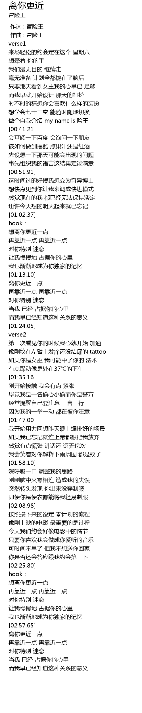 | [02:58.20] | lí nǐ gèng jìn yì diǎn |