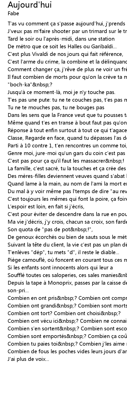 | Il faut combien de morts pour qu'on la crève ta mode de "scar-la" et de "boch-ka" ? | |