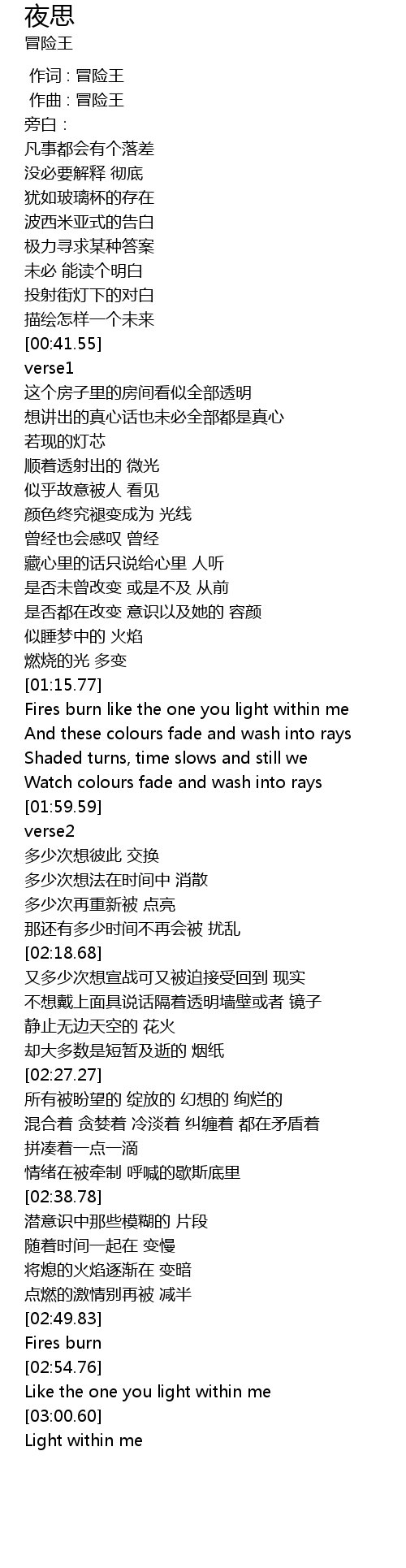 | [02:21.74] | 不想戴上面具说话隔着透明墙壁或者 镜子 |