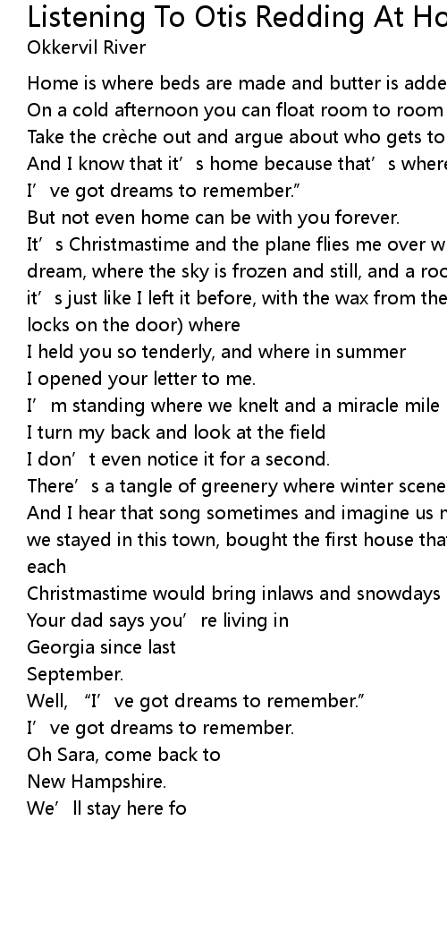 | It' s Christmastime and the plane flies me over white hills to a town in a dream, where the sky is frozen and still, and a room that' s not mine but it' s just like I left it before, with the wax from the candles all dusty and locks on the door where | |
