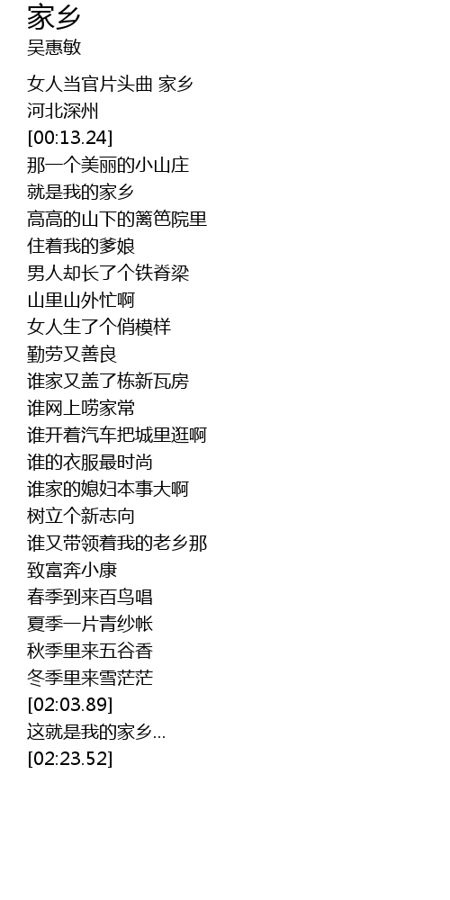 | [00:04.18] | 女人当官片头曲 家乡 |