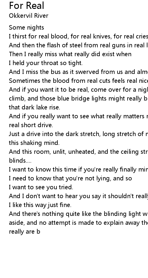 Sometimes the blood from real cuts feels real nice when it's really mine. |