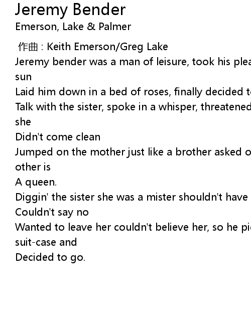 | [00:14.37] | Jeremy bender was a man of leisure, took his pleasure in the evening sun |