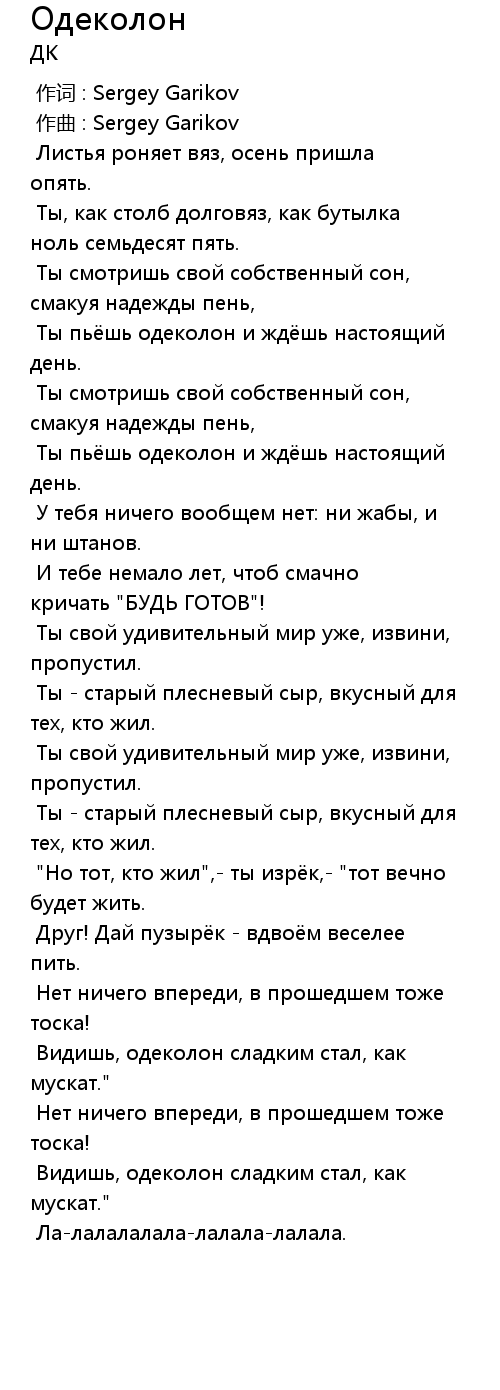 Ты пьёшь одеколон и ждёшь настоящий день. |