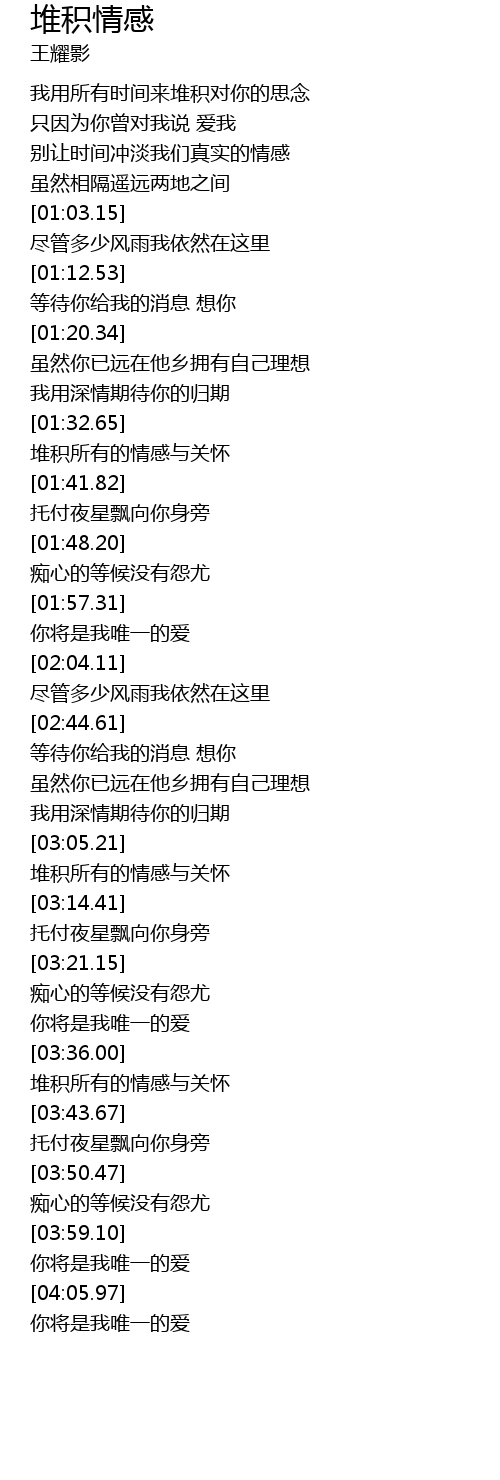 | [03:30.13] | ni jiang shi wo wei yi de ai |