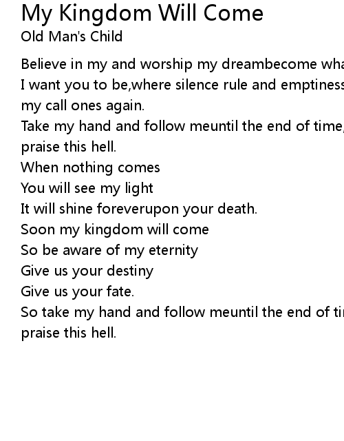 Soon my kingdom will come |