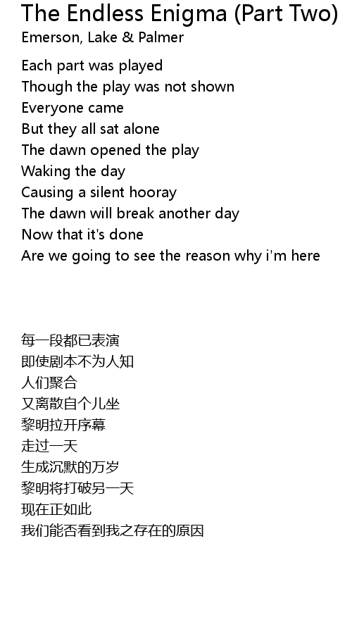 | Song | The Endless Enigma (Part Two) |