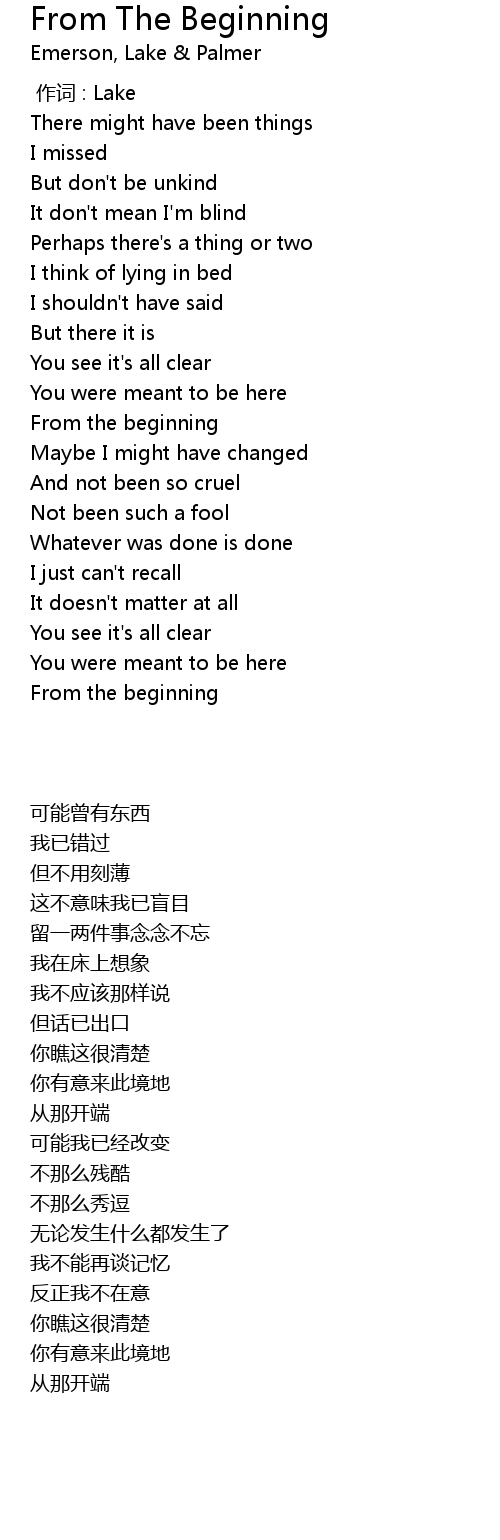 | Song | From The Beginning |