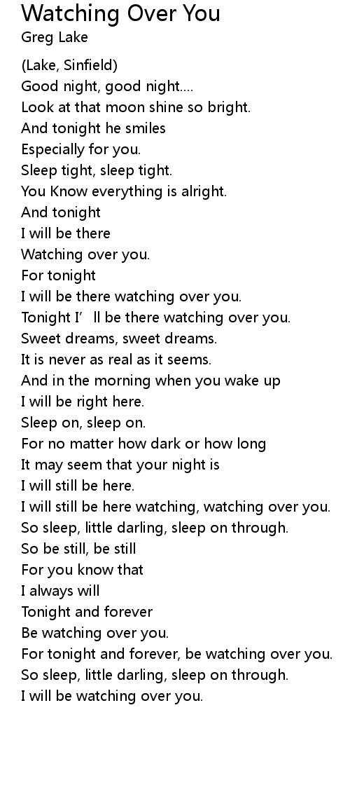 | Tonight I’ll be there watching over you. | |