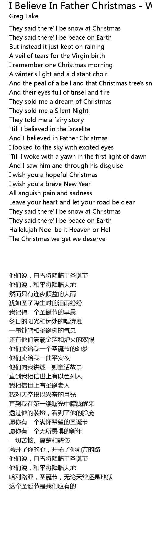 And I believed in Father Christmas |