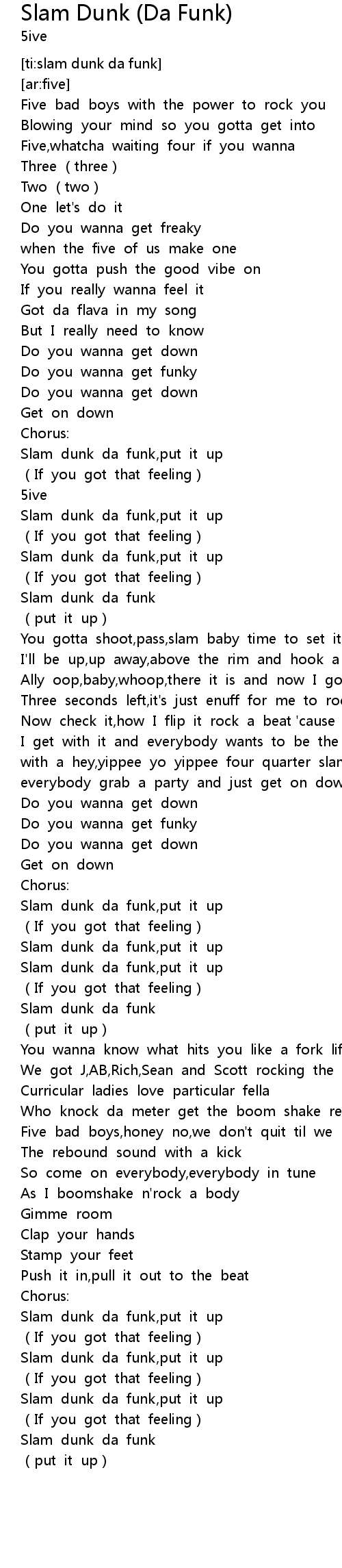 | [01:26.281] | You gotta shoot,pass,slam baby time to set it off |