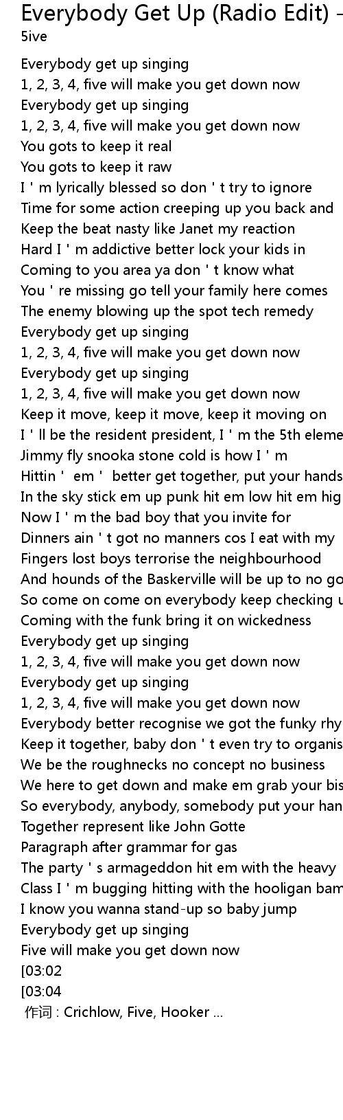 | [03:11][03:02][02:51][02:42] | Everybody get up singing |