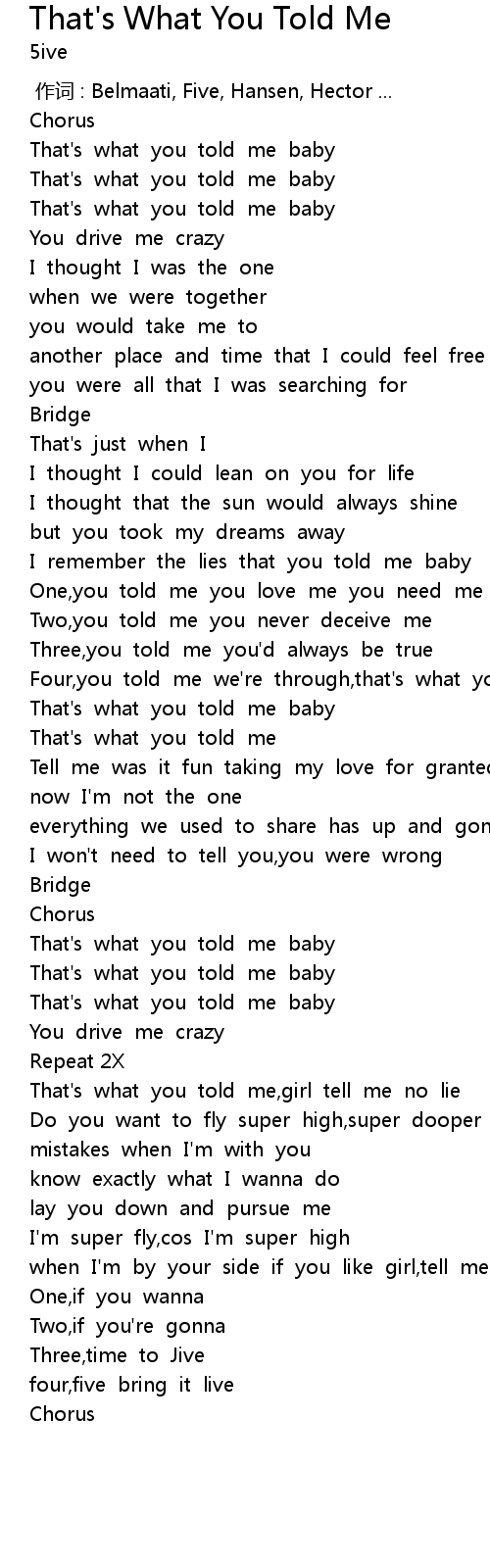 | Song | That's What You Told Me |